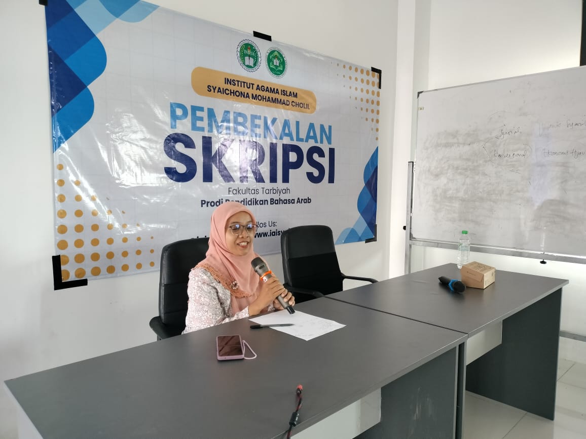 iaisyaichona.ac.id – Program Studi Pendidikan Bahasa Arab (PBA) Fakultas Tarbiyah Institut Agama Islam Syaichona Mohammad Cholil (INSYA) Bangkalan menindaklanjuti kegiatan Pembekalan Skripsi dengan arahan teknis mengenai metodologi penelitian dan sistematisasi penulisan. Kegiatan yang diikuti 40 mahasiswa semester 7 ini dilaksanakan di Auditorium INSYA, Senin (15/12/2025).